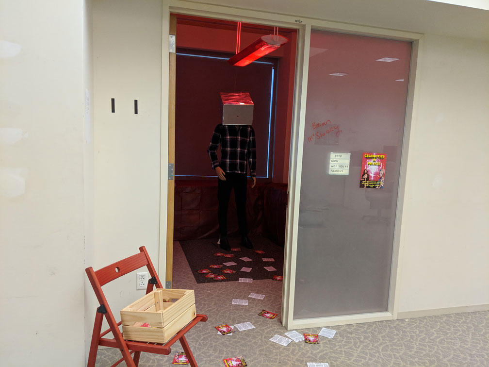 critiques the closeness individuals feel towards celebrity via social media posts. These photographs were taken through a peephole installed within a reflective box that peers into the social media accounts of multiple celebrities. They show glimpses of celebrity life while individuals in quarantine try to mirror these emotions to feel the leisure of celebrity.